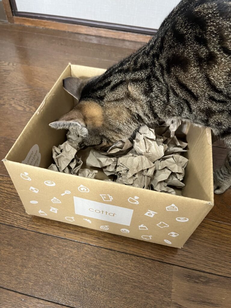 今回はあめ🐱にダンボールと紙を使ったノーズワークに挑戦してもらいました!