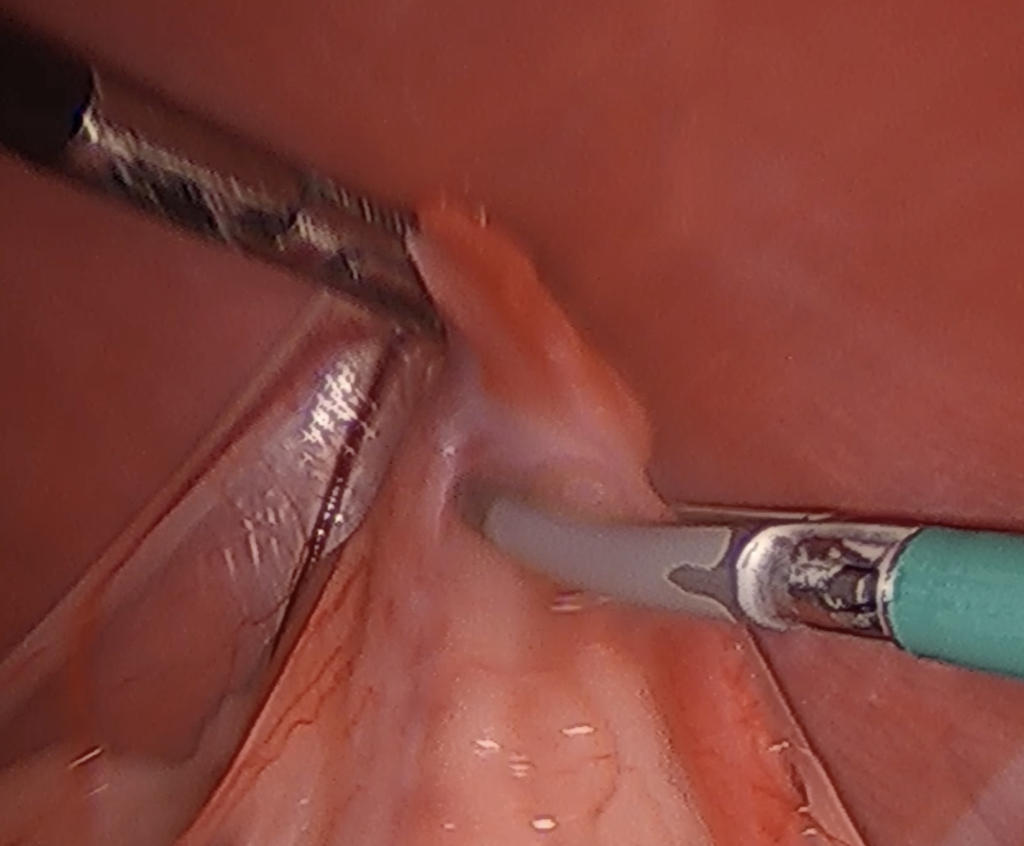 ④カメラ画像を見ながら左右卵巣の摘出
