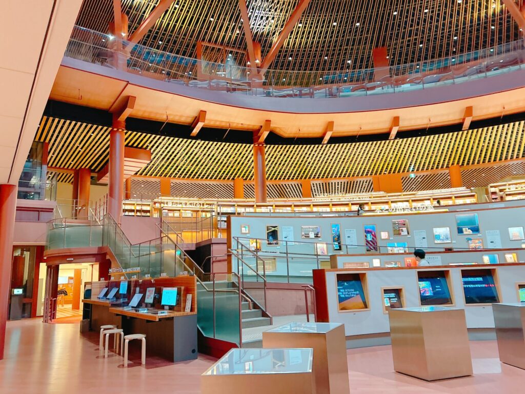 円形に広がる本棚と開放感のある空間は、まるでひとつの作品のようで、静かな時間が旅の余韻を深めてくれます。