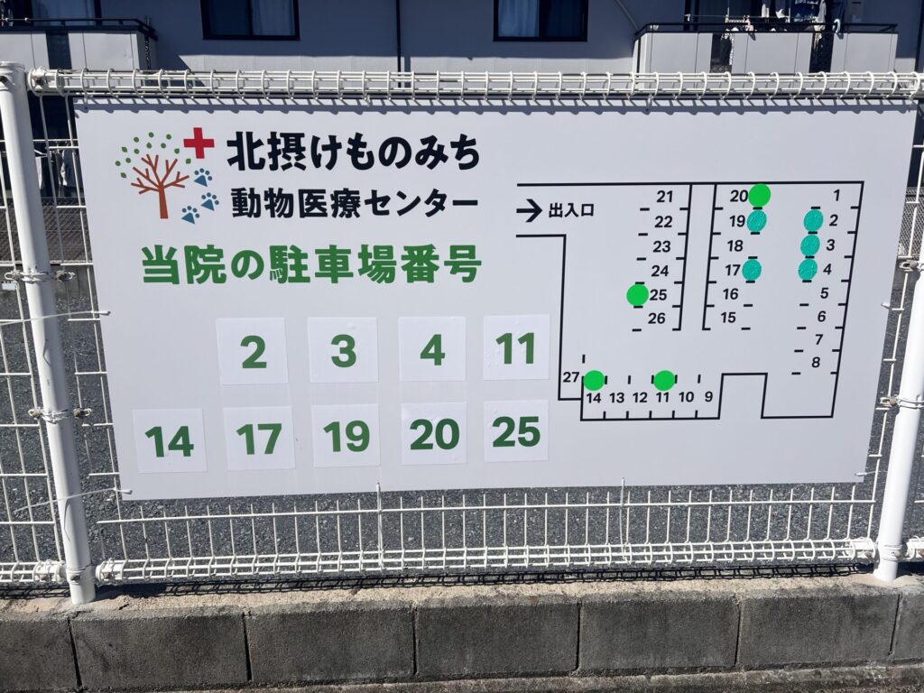 医院の看板がございますので、お間違えないように駐車くださいませ。